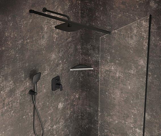 Помогут в этом полки из коллекции Slim, предлагающиеся в двух комбинациях отделки, в том числе черного и сатинового оттенков в сочетании с хромом. Они могут быть треугольной либо овальной формы, чтобы наилучшим образом подойти к интерьеру ванной. Благодаря своему оригинальному дизайну они позволяют создавать на стенах композиции из нескольких изделий. При этом не стоит переживать за их стойкость к влаге – мелко перфорированная поверхность с одной стороны пропускает воду, а с другой надежно удерживает необходимые принадлежности.