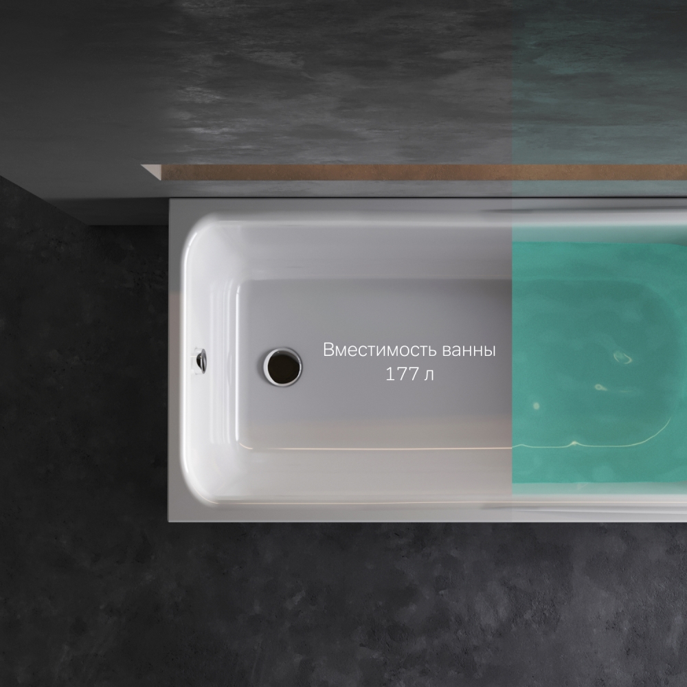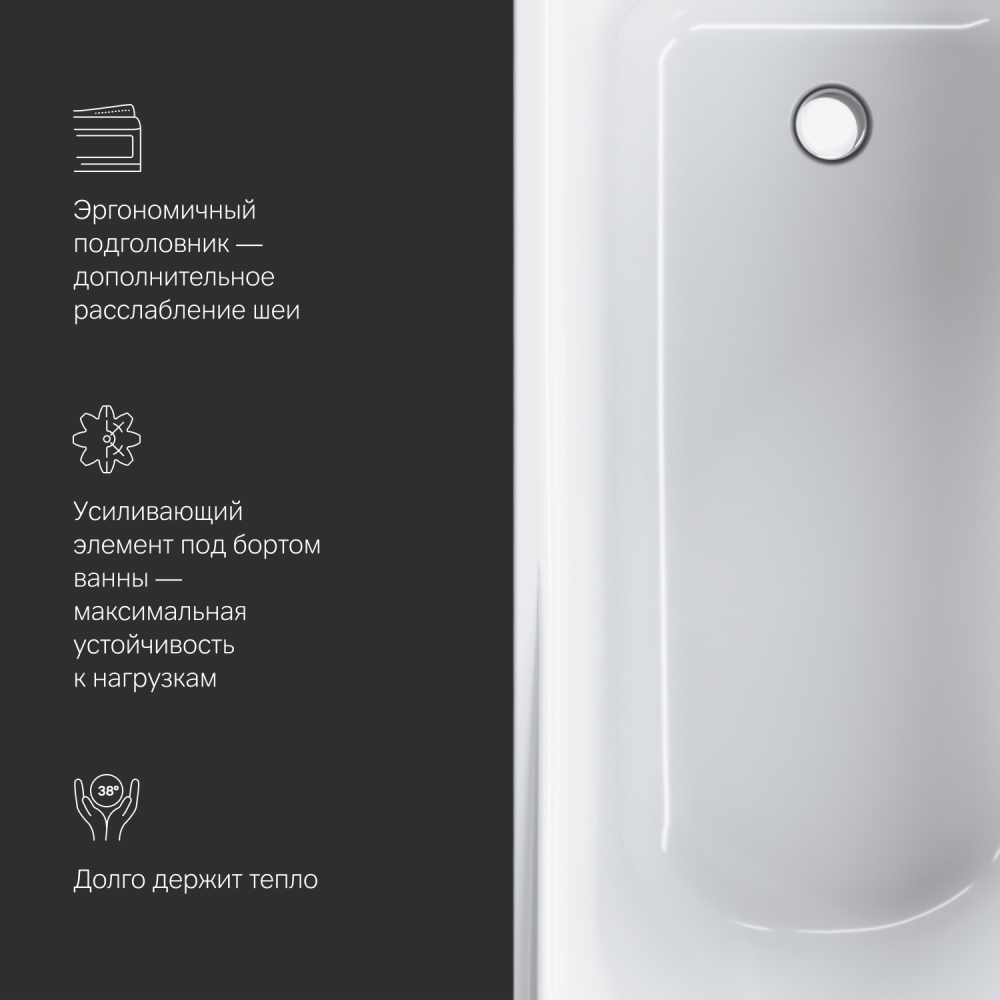 Ванна имеет увеличенную глубину, что позволяет с комфортом расположиться одному или двум людям.
