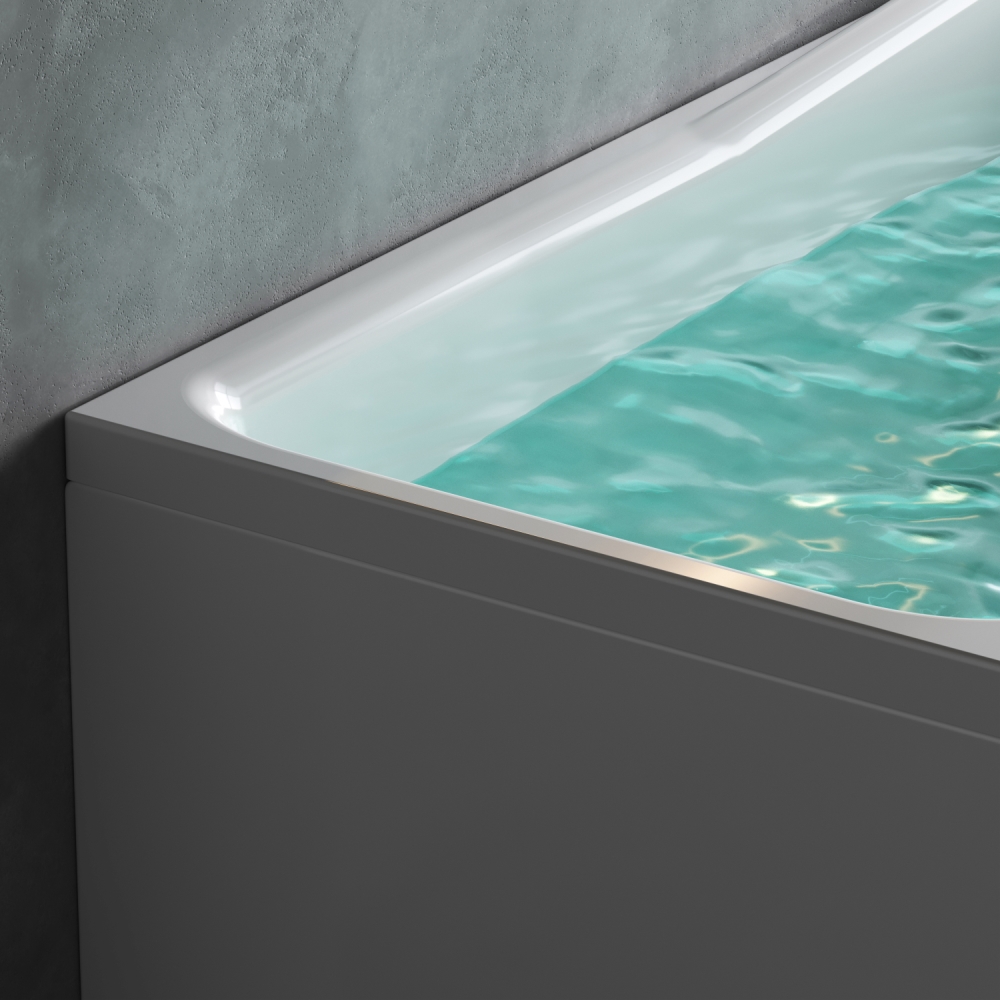 Ванна из литого акрила, армированная. Материал отличается прочностью и имеет гладкую поверхность без пор, что препятствует размножению бактерий и облегчает уход за ванной.