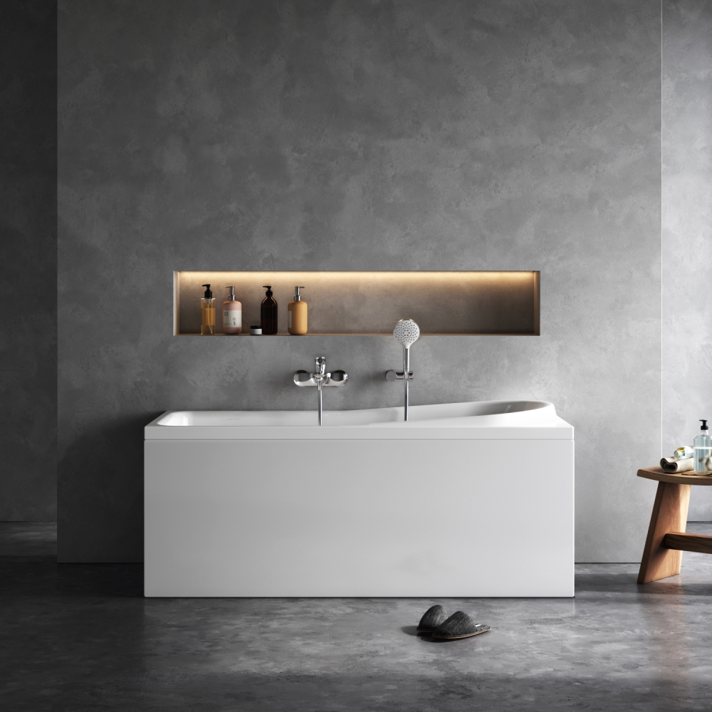 Прямоугольная ванна с плавными линиями украсит любую ванную комнату.