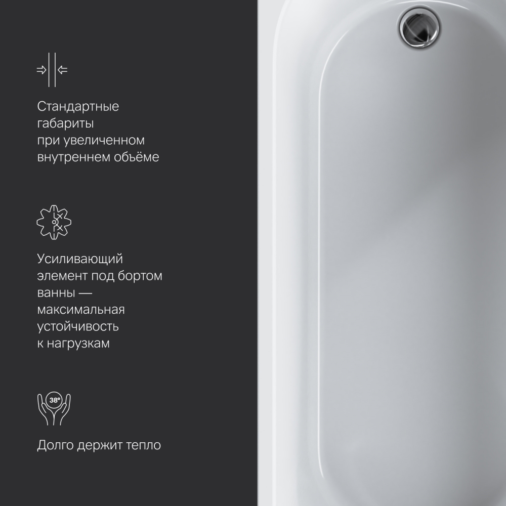 Компактная проекция позволяет вписать ванную даже в небольшое помещение. А универсальный дизайн подойдет как для современного, так и для классического интерьера.