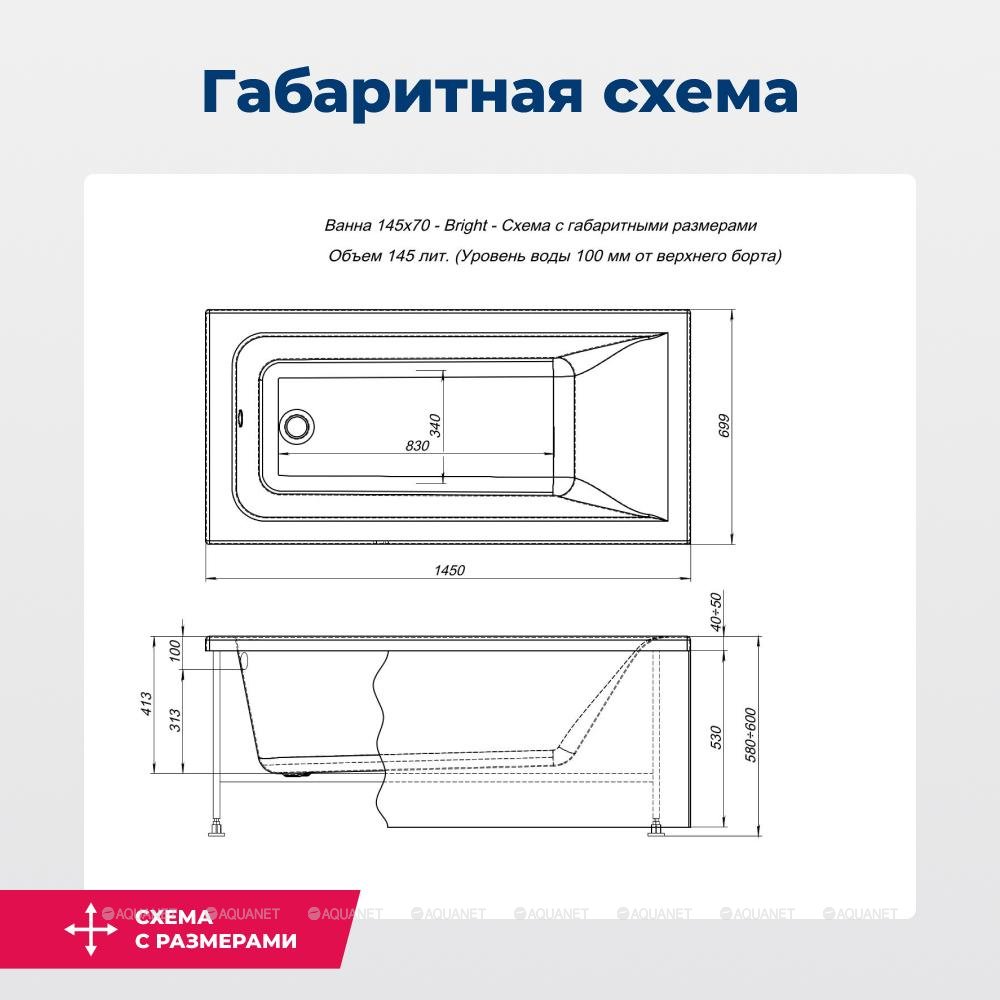 Акриловая ванна Aquanet Bright 145x70 создана с учетом растущего спроса на ванны простой прямоугольной формы в популярных размерах. Это модель с прямыми бортами и пологой спинкой, где соблюден идеальный угол для комфортного нахождения в ванне. Спинка плавно перетекает в бортик, поэтому релакс гарантирован даже без использования подголовника. Все линии ванны подчинены строгим законам эргономики.