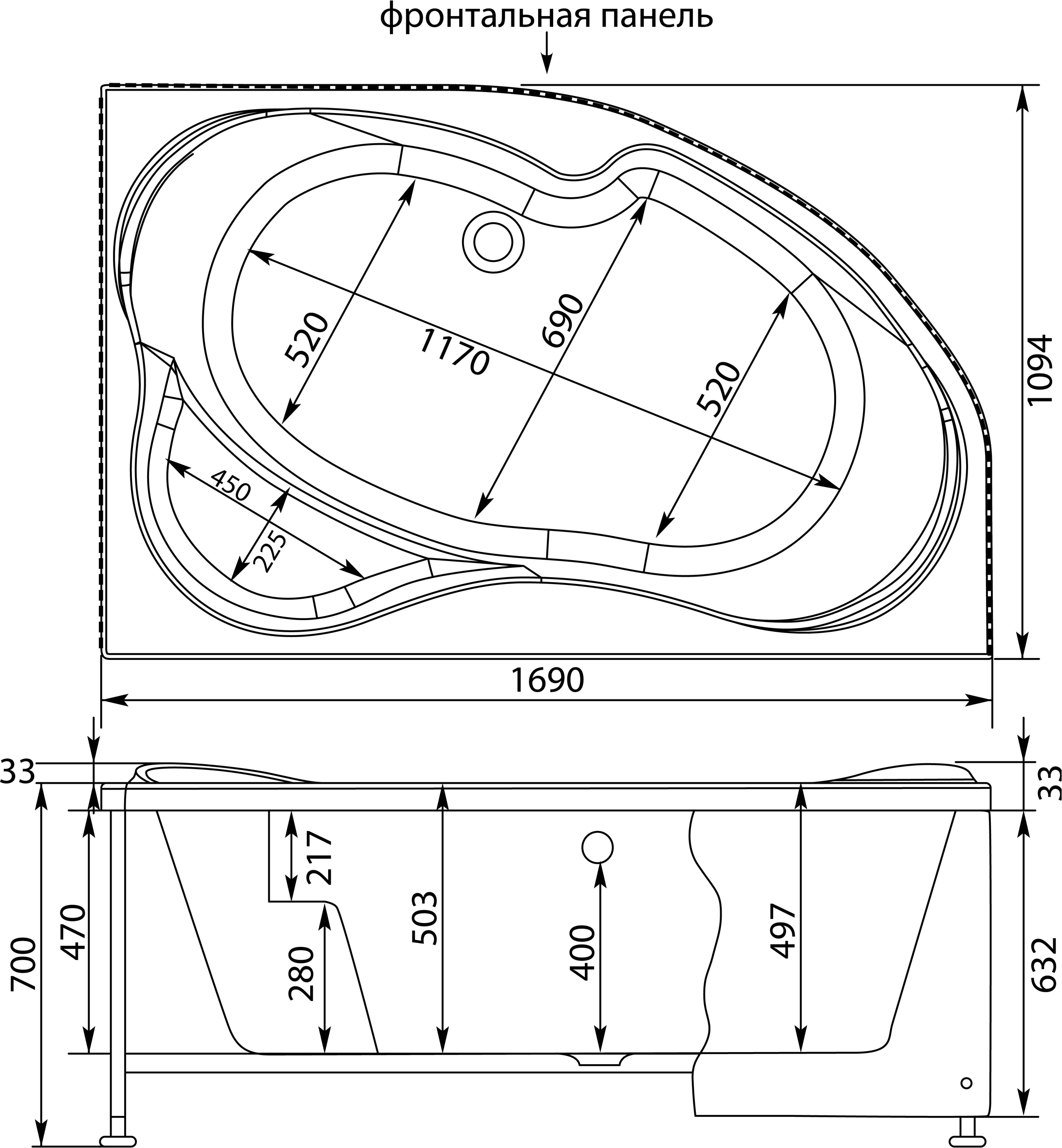 | Расположение перелива | по центру |