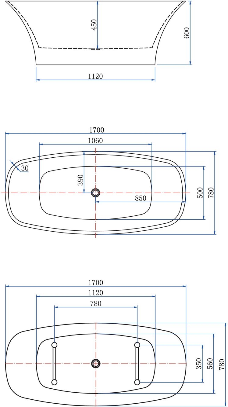 | Расположение перелива | по центру |