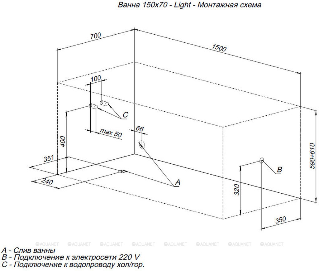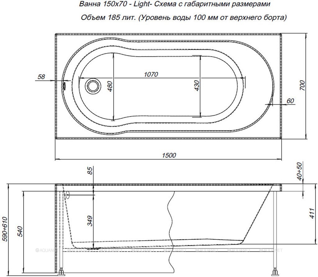 Акриловая ванна Aquanet Light 150x70 занимает особое место в ассортименте компании «Акванет», так как эффектно смотрится как в стандартной планировке, так и в небольшом помещении. У нее эргономичная чаша глубиной 380 мм и широкие борта. На них легко найти место для установки набортного смесителя – популярная в последнее время опция. А если установить на ванну еще и гидромассажное оборудование, аэромассаж и подсветку, то получится настоящий спа-комплекс на дому, куда войдет 185 литров воды.