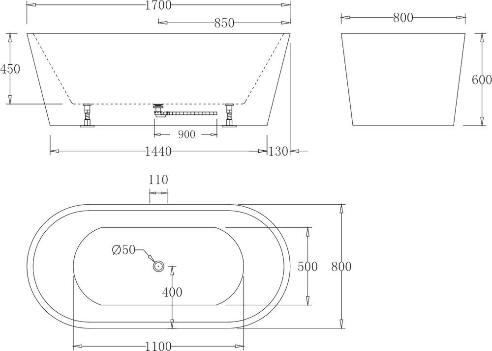 | Расположение перелива | по центру |