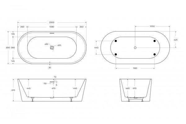 - Отверстие перелива расположено по центру.