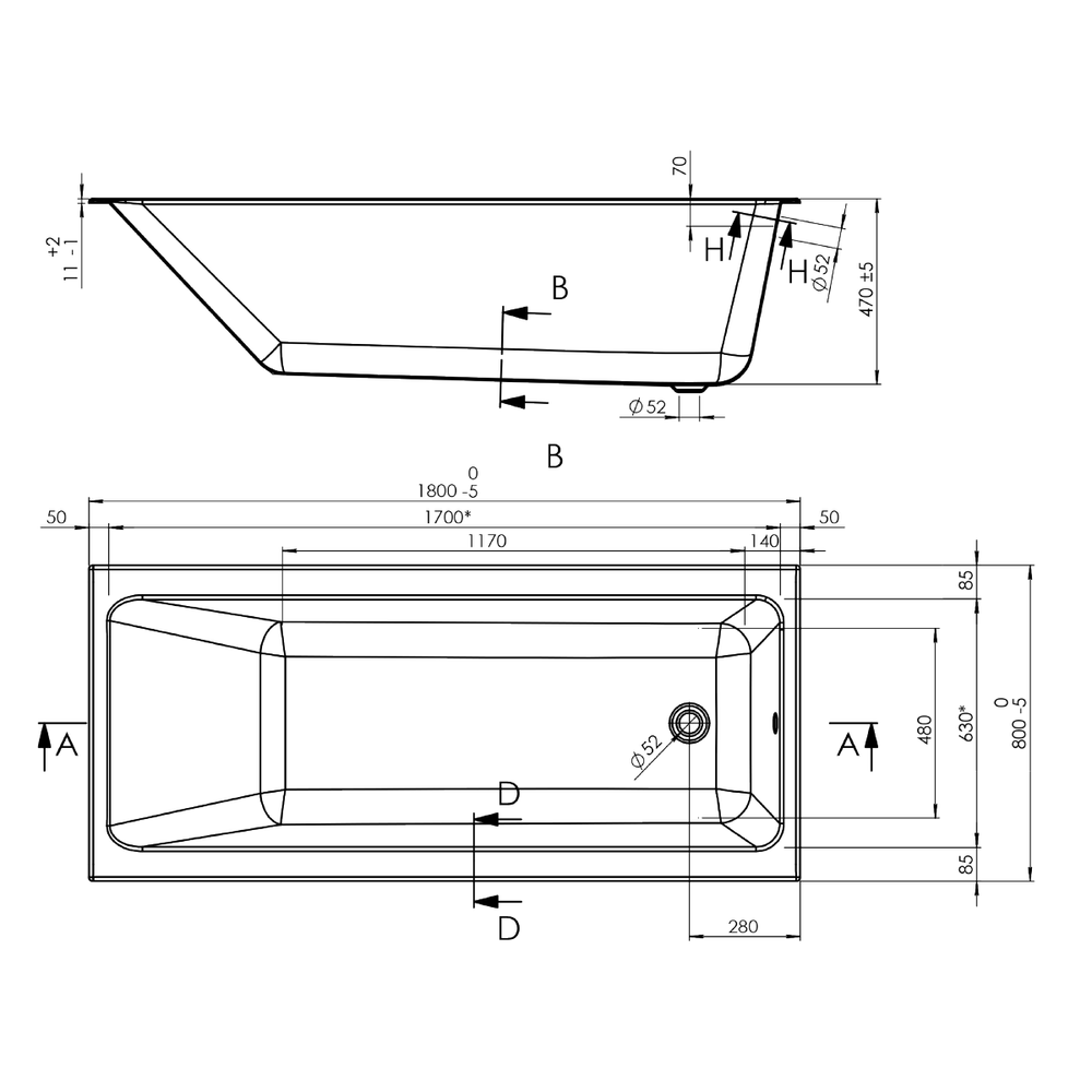 | Расположение перелива | стандартное |