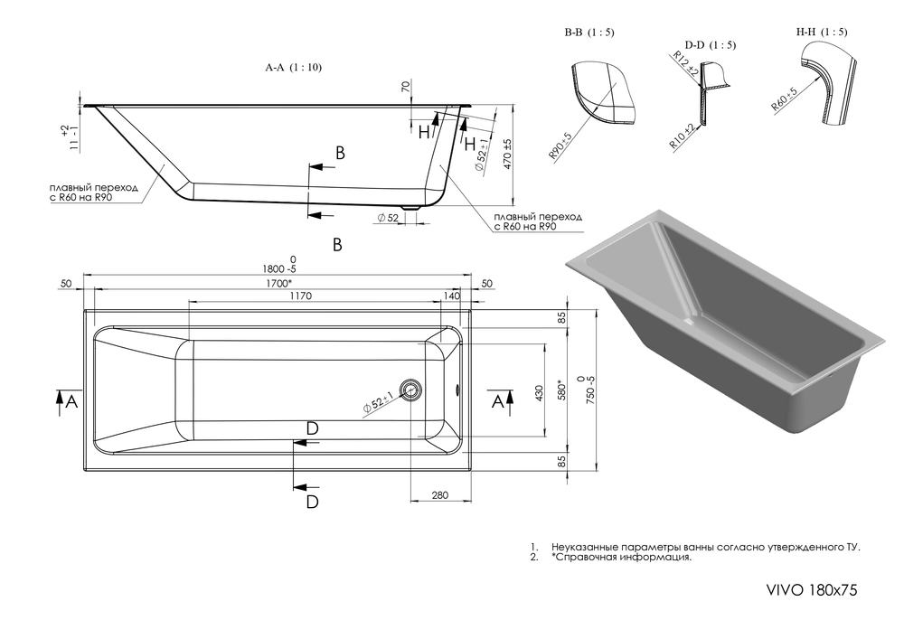 Акриловая ванна Vivo подойдёт всем, кто ищет классическую элегантную модель для обустройства современного интерьера. Чёткая и понятная форма ванны с углубленной чашей для большего комфорта добавляет стиля ванной комнате.