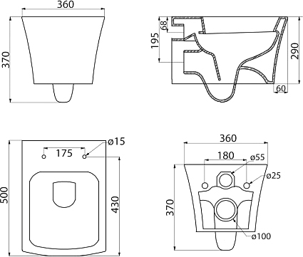 Приставной белый унитаз BelBagno с резкими краями. Прекрасно подойдет к интерьеру ванной в современном дизайне.