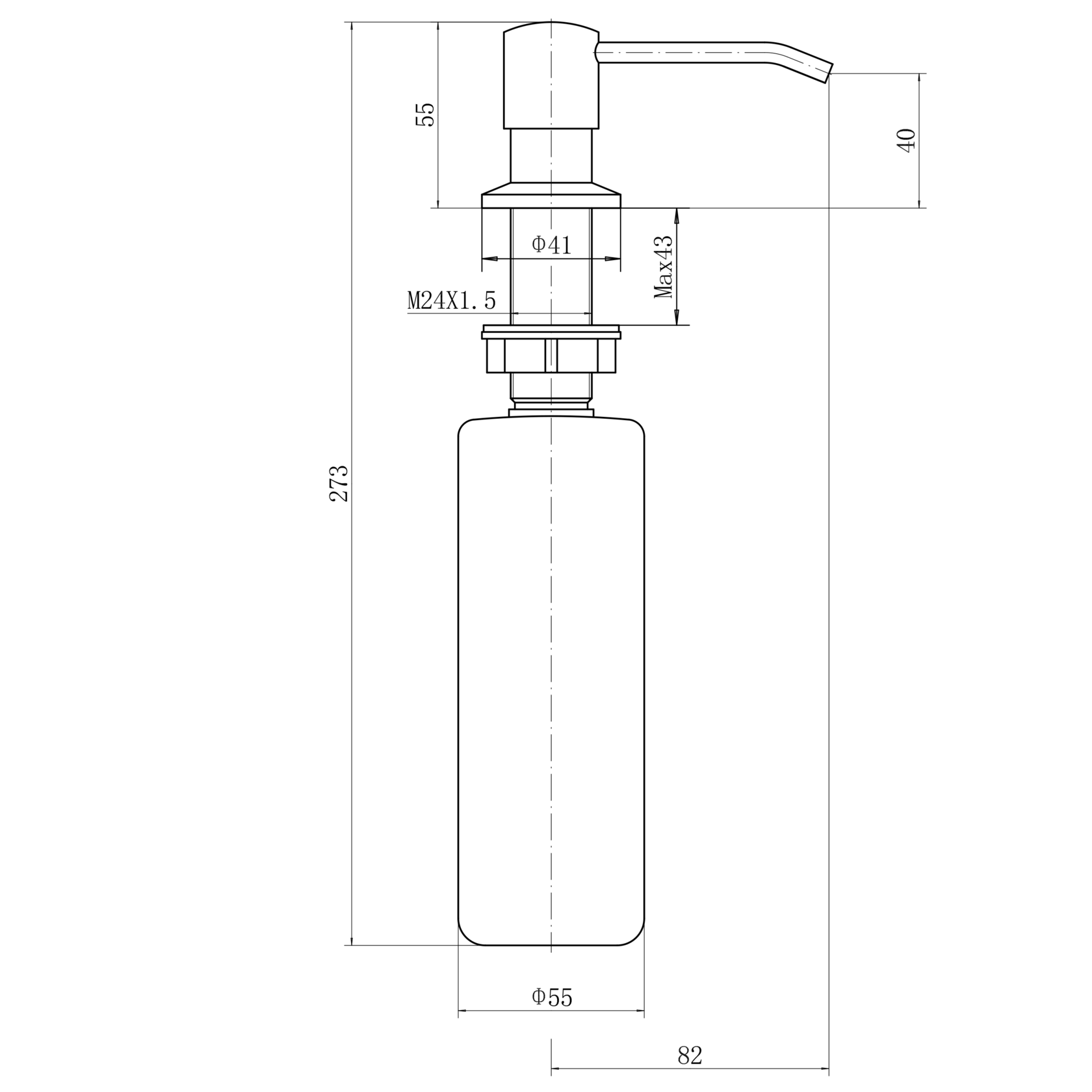 Высота внешней части =55 мм.Радиус нажимного элемента =26 мм. Подходит для столешниц толщиной до 43 мм.