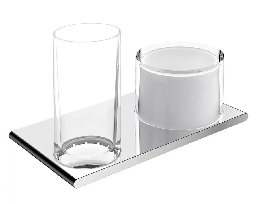 Двойной держатель со стаканом и дозатором KEUCO Edition 400 11553 019000. Цвет хром.
