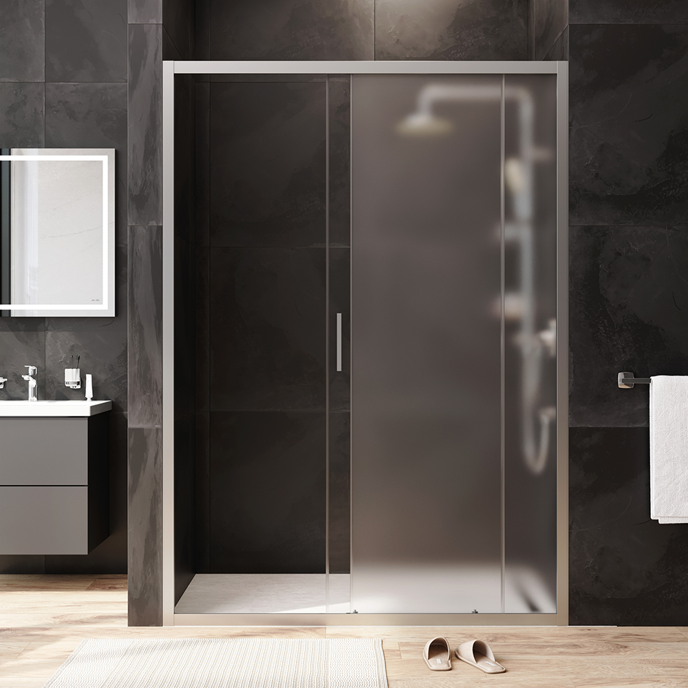 - Душевая дверь отличается практичностью и функциональностью. Изделие произведено из ударопрочного закаленного стекла, которое надежно фиксируется в нержавеющий алюминиевый профиль при помощи системы скрытых креплений