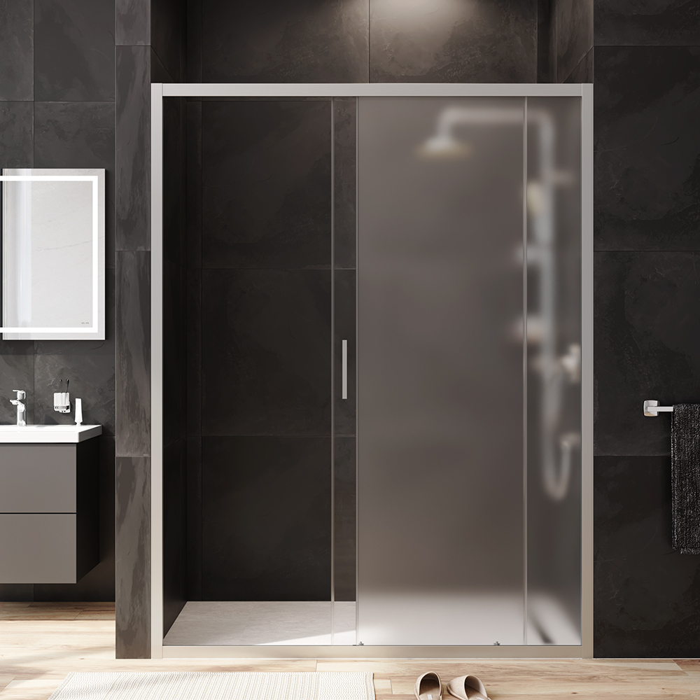 - Душевая дверь отличается практичностью и функциональностью. Изделие произведено из ударопрочного закаленного стекла, которое надежно фиксируется в нержавеющий алюминиевый профиль при помощи системы скрытых креплений