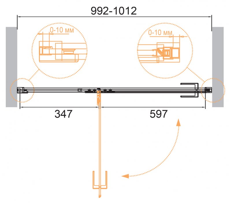 - Регулировка ширины предусмотрена за счет боковых профилей