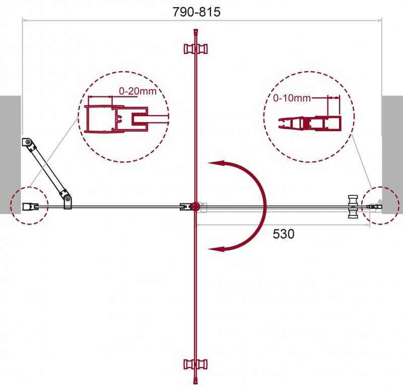 - Регулировка ширины предусмотрена за счет боковых профилей