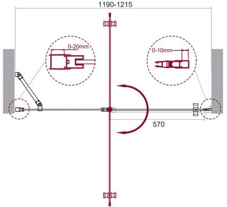 - Регулировка ширины предусмотрена за счет боковых профилей