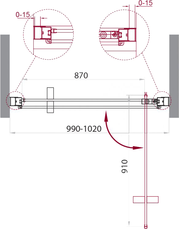- Регулируемый пристенный профиль, позволяет без проблем установить изделие даже при кривизне стен