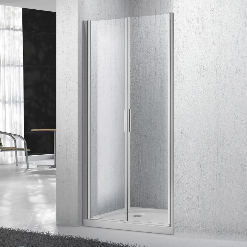 Двухсекционная распашная душевая дверь в нишу BelBagno Sela B-2 шириной 90 см, профиль Хром, стекло прозрачное. Артикул: SELA-B-2-90-C-Cr.