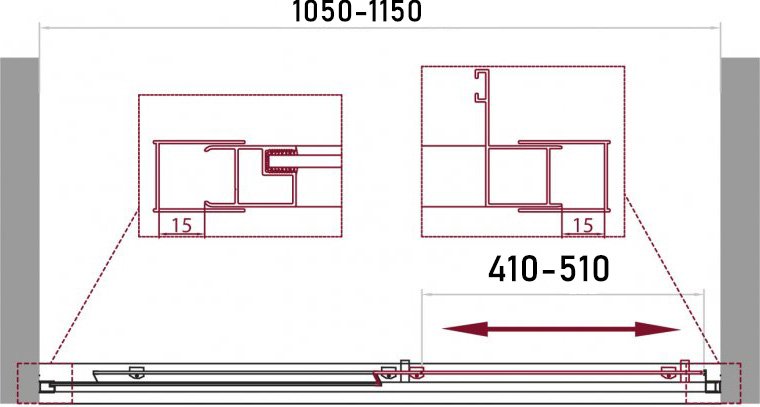 - Регулировка ширины предусмотрена за счет боковых профилей