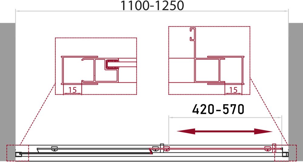 - Регулировка ширины предусмотрена за счет боковых профилей
