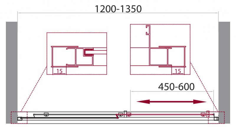 - Регулировка ширины предусмотрена за счет боковых профилей