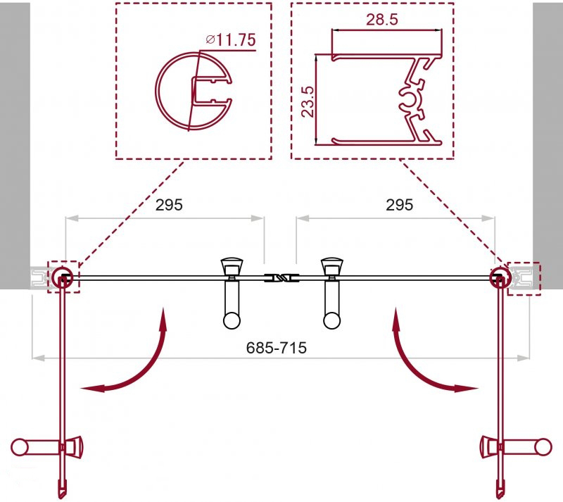 - Регулировка ширины предусмотрена за счет боковых профилей