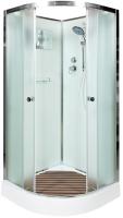 | Оснащение | душевой гарнитур, сифон, смеситель, антискользящая вставка из антибактериального цельнолитого полимера, полочка, крючок |