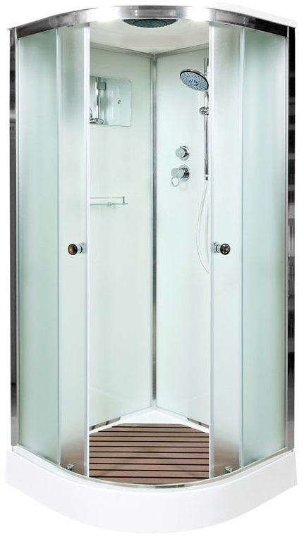 | Оснащение | душевой гарнитур, сифон, смеситель, антискользящая вставка из антибактериального цельнолитого полимера, полочка, крючок, гибкая подводка |