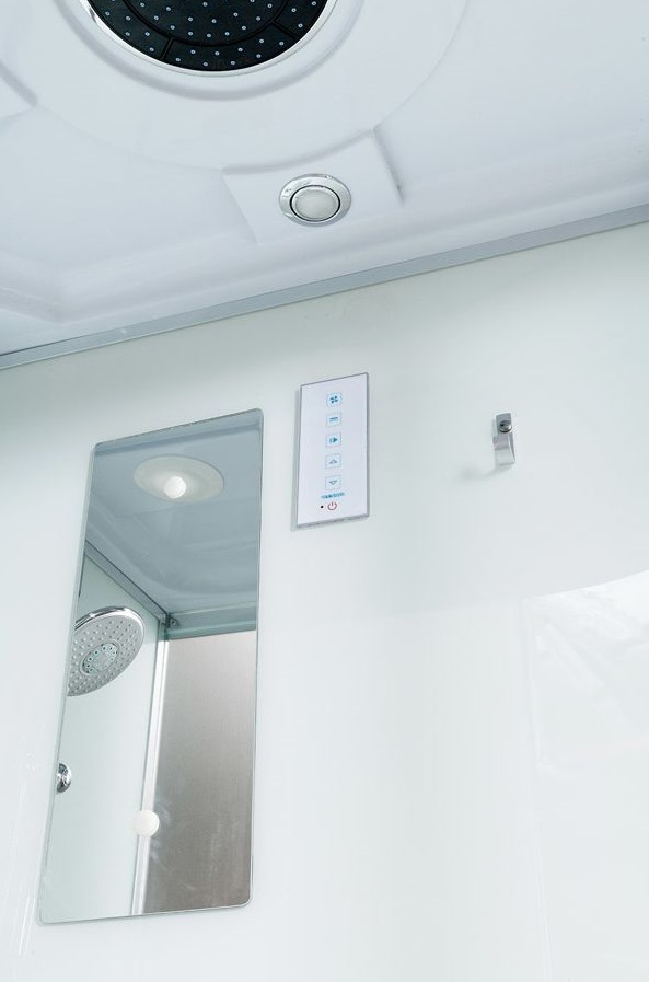 | Оснащение | душевой гарнитур, экран, сифон, смеситель, пульт ДУ, душевая штанга |