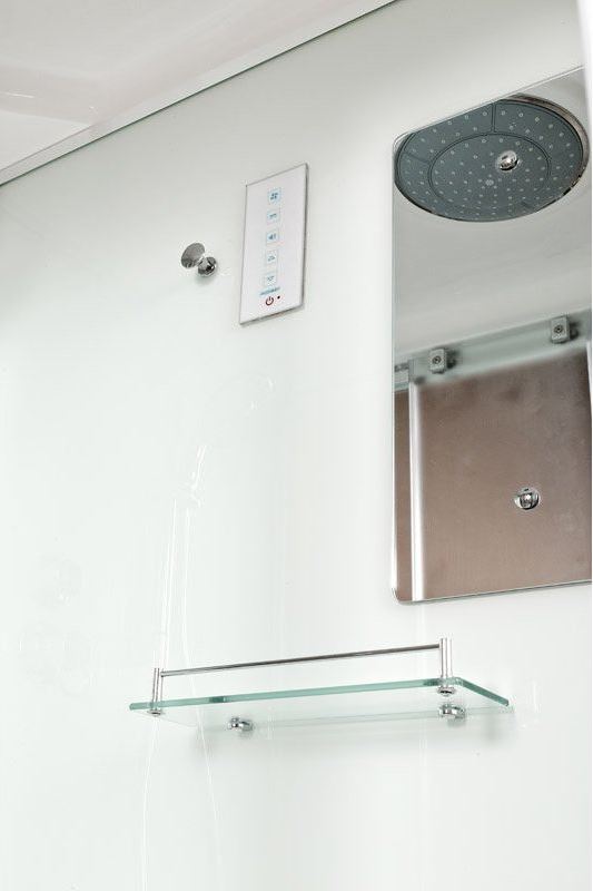 | Оснащение | душевой гарнитур, экран, сифон, смеситель, пульт ДУ, душевая штанга |