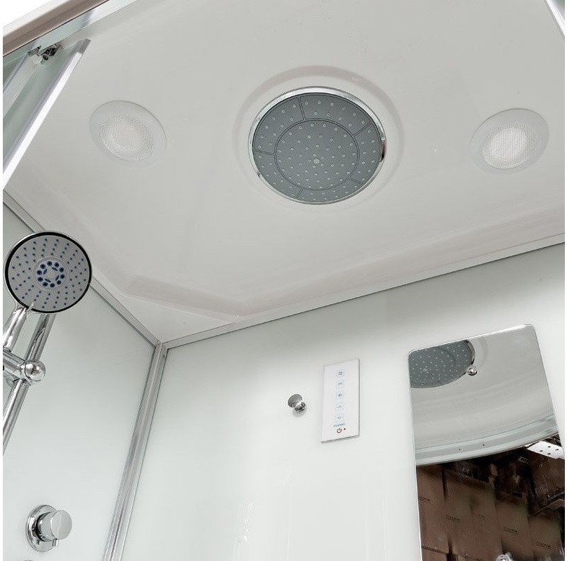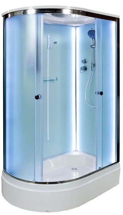 | Оснащение | душевой гарнитур, экран, сифон, смеситель, пульт ДУ, душевая штанга |