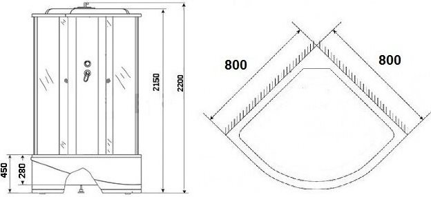 - Поддон сделан из акрила, усиленный, нагрузка до 300 кг, есть бортик по периметру и дренажные каналы