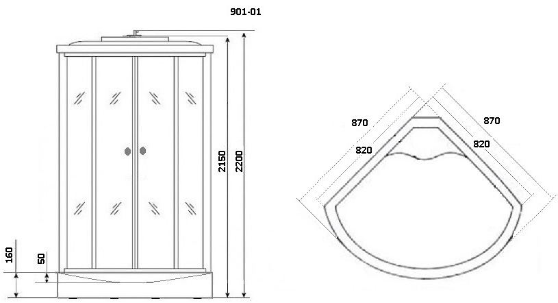 - Передние неподвижные стенки и двери из каленого стекла. Двери передвигаются по профилю с помощью двойных роликов. Ролики прочные со стальным сердечником. Двери закрываются плотно, при использовании душа, нет брызг