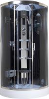- Задние стенки изготовлены из каленного стекла 5 мм тонированного цвета, не прозрачные. На правой стенке установлены аксессуары: Штанга с дополнительной лейкой 3 режима переключения, зеркало. На левой стенке полотенце держатель и 2 контейнера под жидкие средства, так же массаж ног