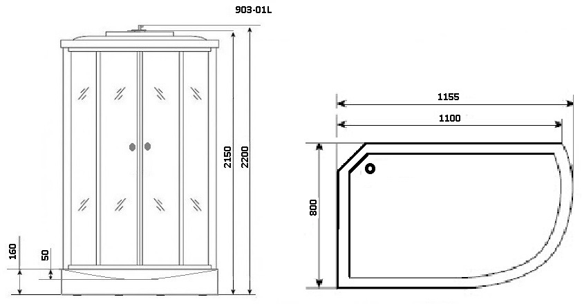 - Передние неподвижные стенки и двери из каленого стекла. Двери передвигаются по профилю с помощью двойных роликов. Ролики прочные со стальным сердечником. Двери закрываются плотно, при использовании душа, нет брызг