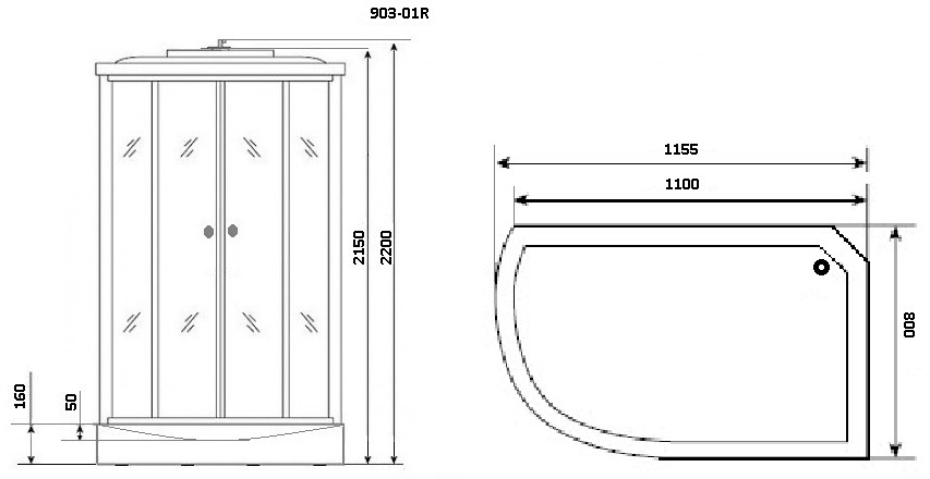 - Передние неподвижные стенки и двери из каленого стекла. Двери передвигаются по профилю с помощью двойных роликов. Ролики прочные со стальным сердечником. Двери закрываются плотно, при использовании душа, нет брызг