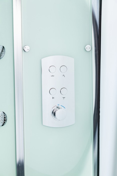 - В кабине 8 гидромассажных форсунок, верхний душ с эффектом дождя и ручной душевой гарнитур с тремя режимами