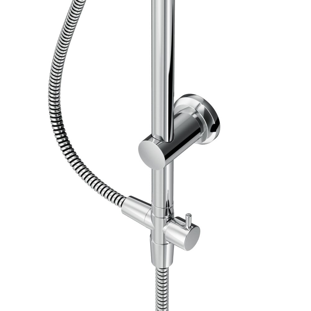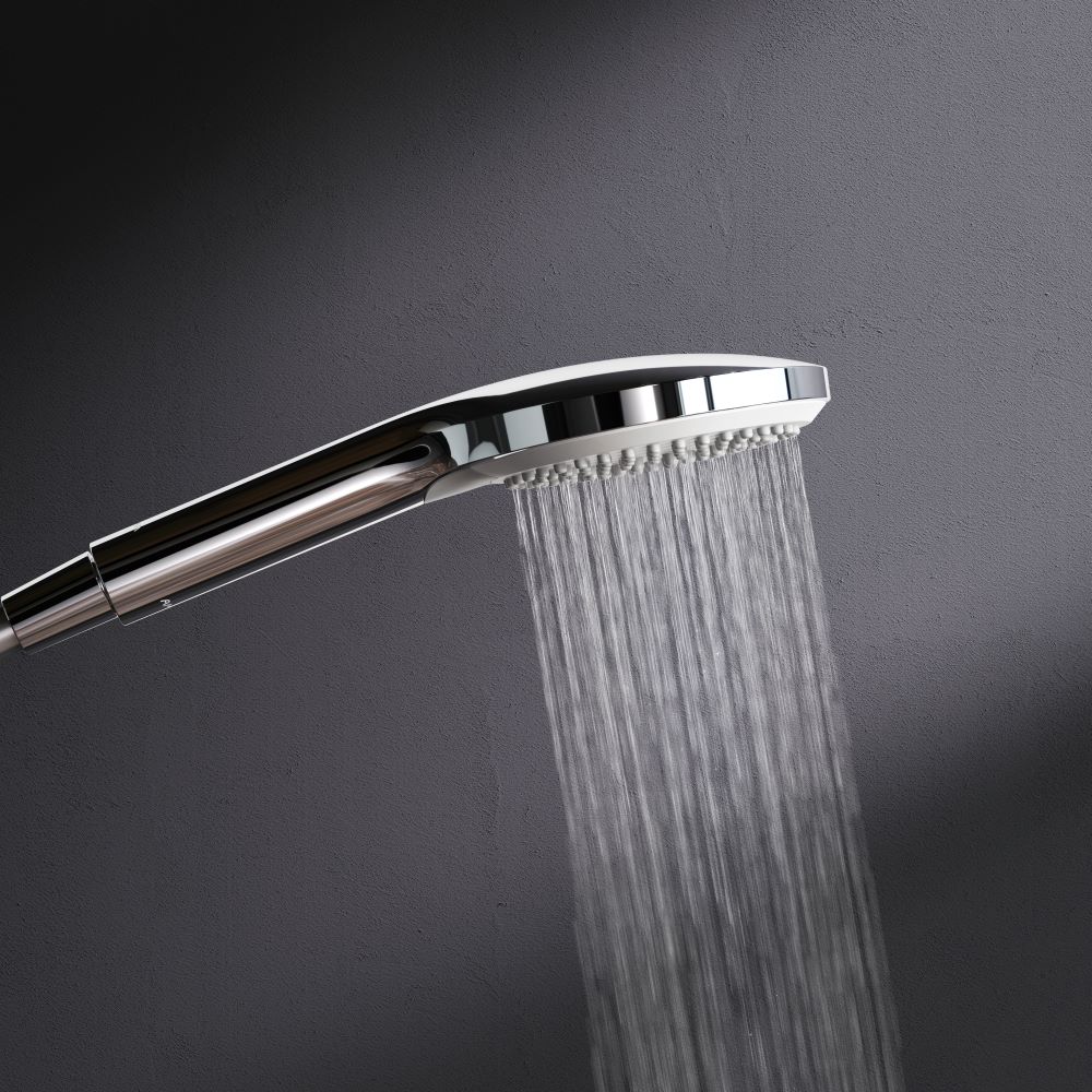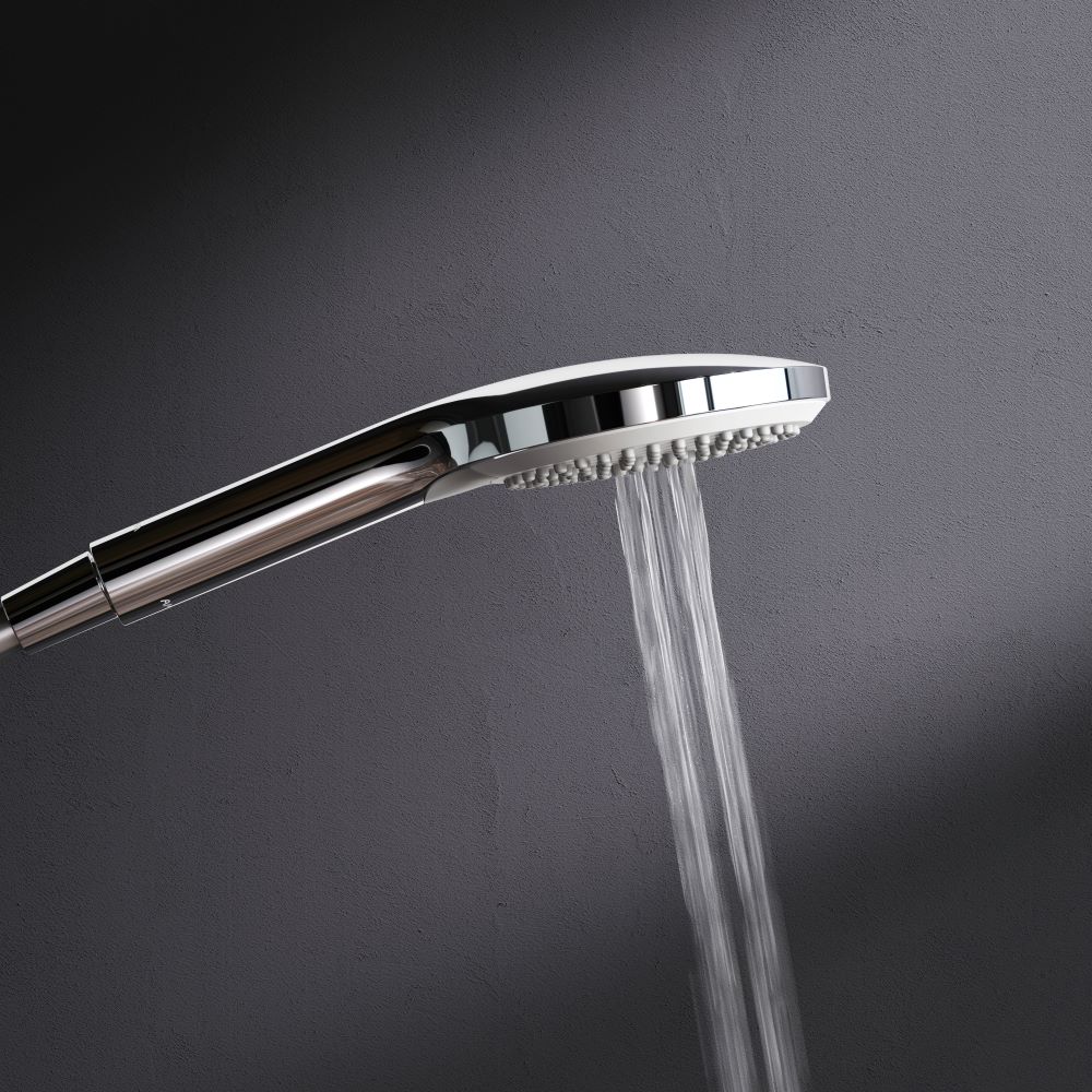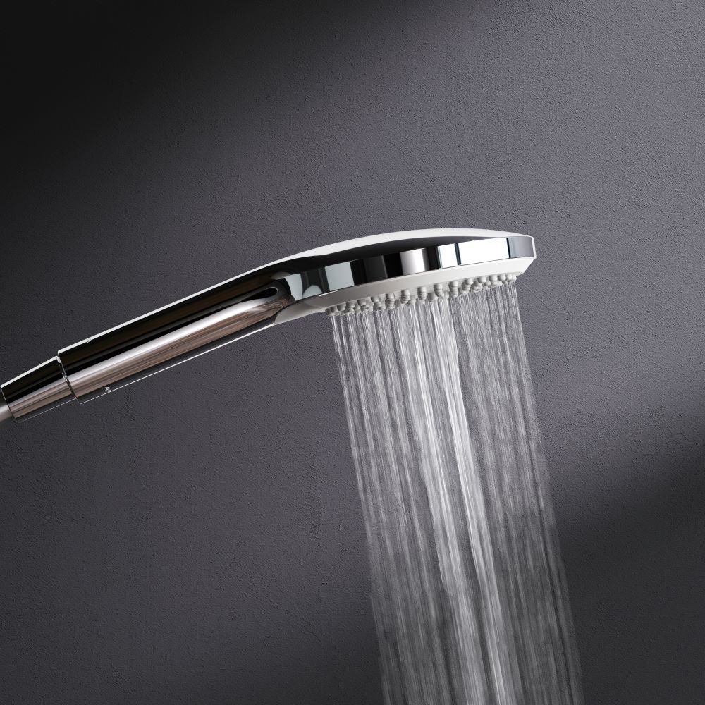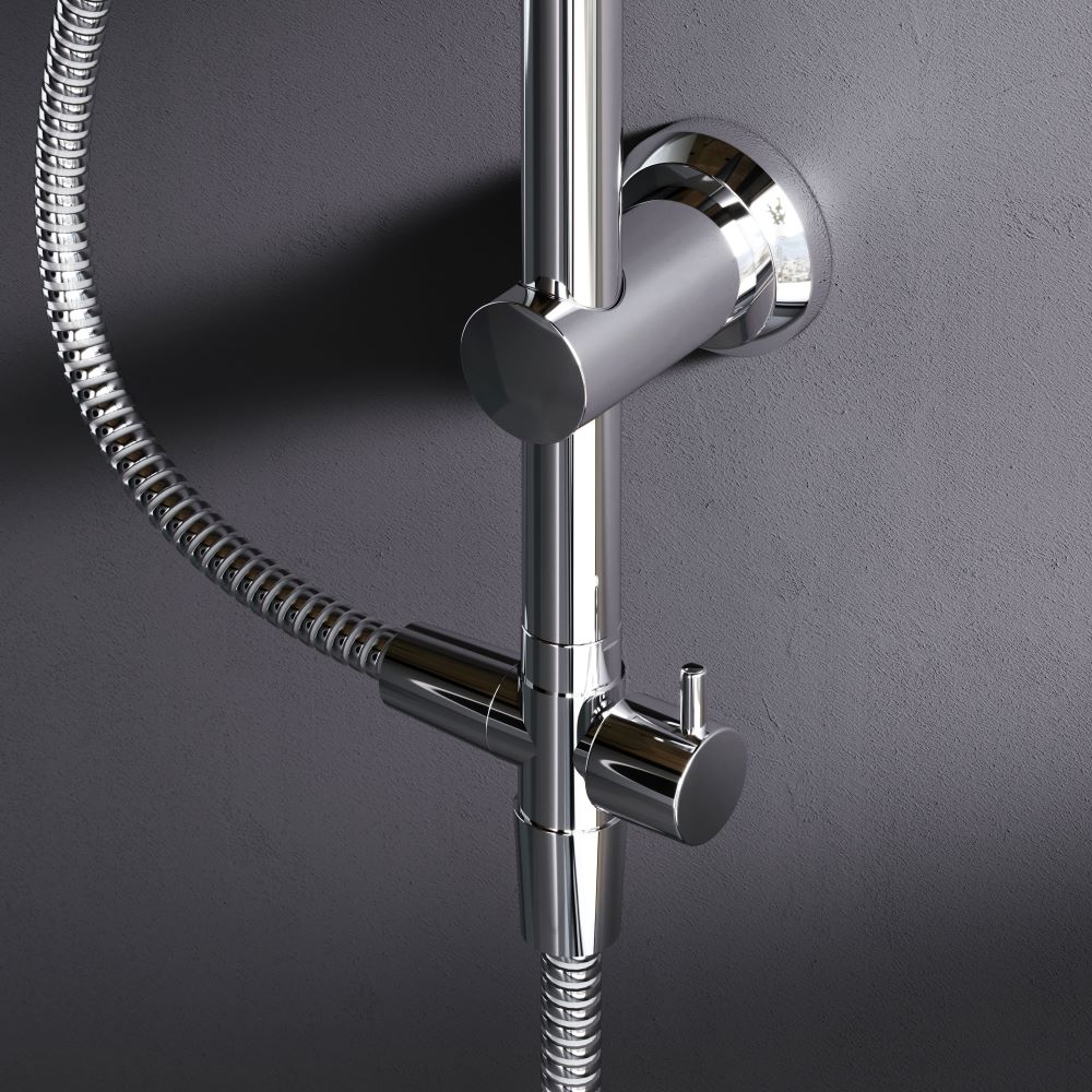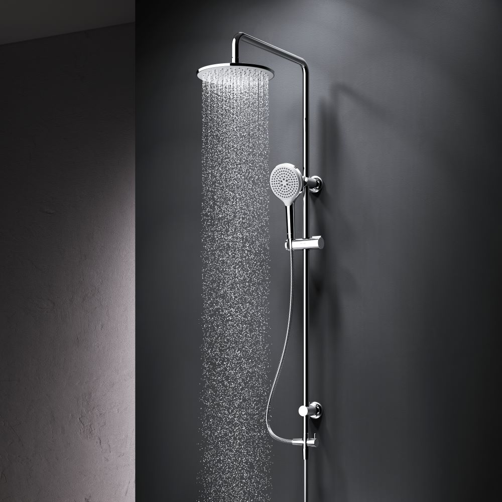 - Мы продумали все детали для максимального удобства использования: -шаровый шарнир в держателе верхнего душа позволяет регулировать угол его наклона. -душевой шланг 1750 мм, увеличенный размер тропического душа диаметром 220 мм, ручной душ диаметром 120 мм. -функция Rub&Clean позволит легко очистить душевые форсунки от загрязнений.