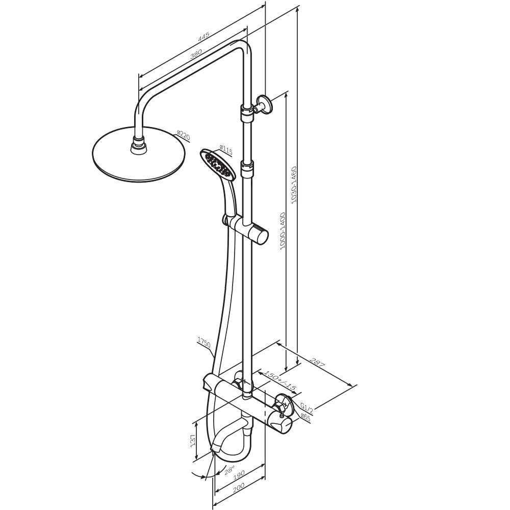 - душевой шланг 1750 мм, увеличенный размер тропического душа диаметром 220 мм, телескопическая штанга с диапазоном регулировки 400 мм сделает процесс принятия душа удобным для людей любого роста.
