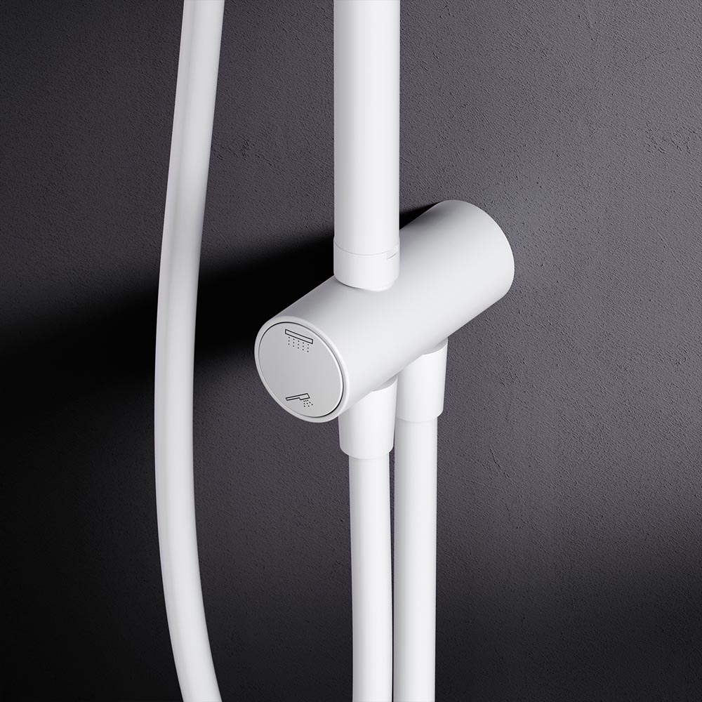 - Тотальный дизайн в действии: все детали душевой системы – от пропорций ручного и верхнего душей до рисунка расположения форсунок на лейках – подчинены единой дизайн-концепции коллекции Gem