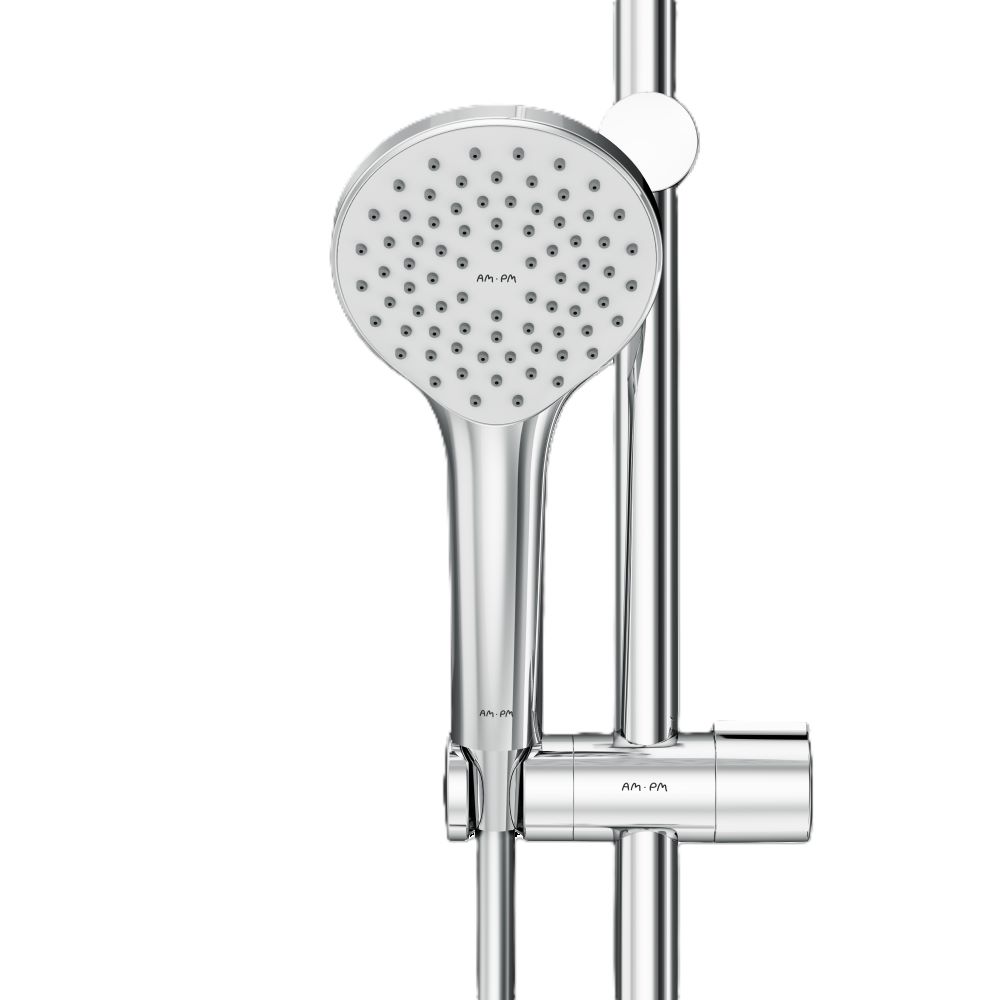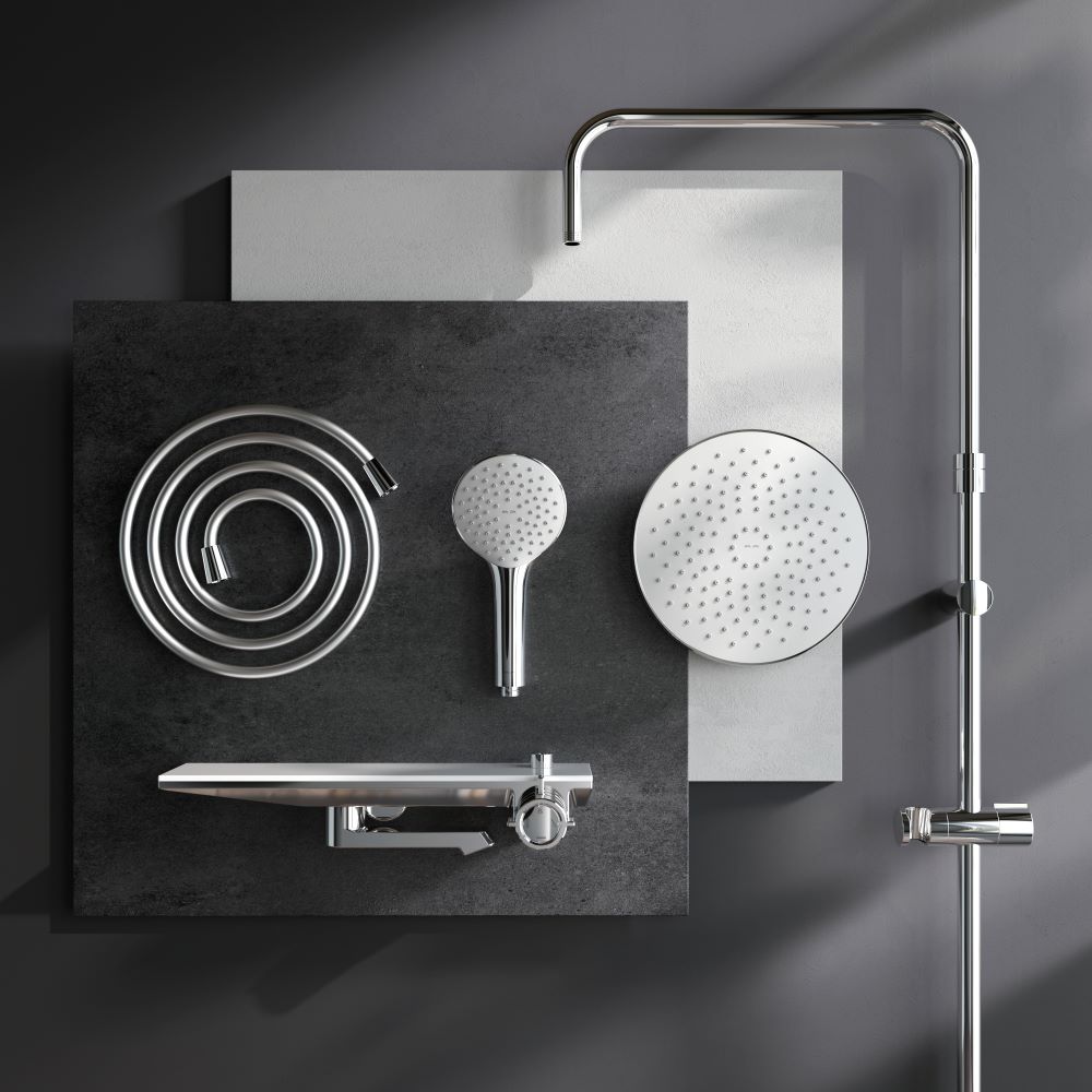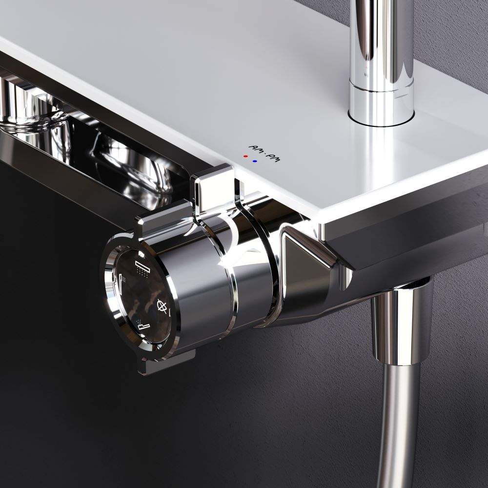 - Уникальная система управления: регулируйте температуру и напор воды и переключайте потоки между смесителем, ручным и верхним душем поворотом всего одной ручки — управление еще никогда не было таким простым и интуитивно понятным.