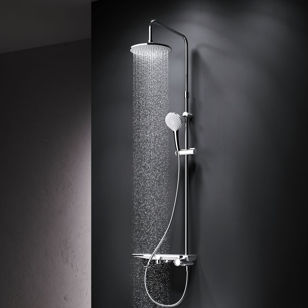 - Еще больше места для хранения: верхняя часть смесителя выполнена в виде вместительной полочки. Теперь все необходимые душевые принадлежности всегда будут под рукой.