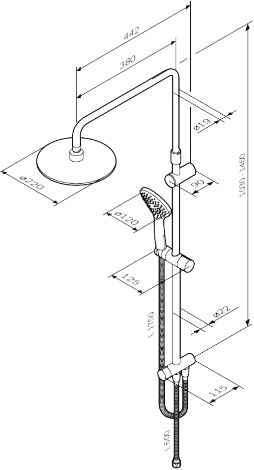 - Телескопическая поворотная штанга регулируется по высоте в диапазоне от 1030 до 1460 мм, обеспечивая комфорт для людей любого роста, а шаровой шарнир в держателе верхнего душа позволяет регулировать угол его наклона.