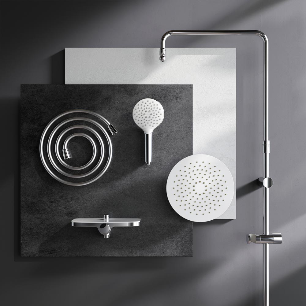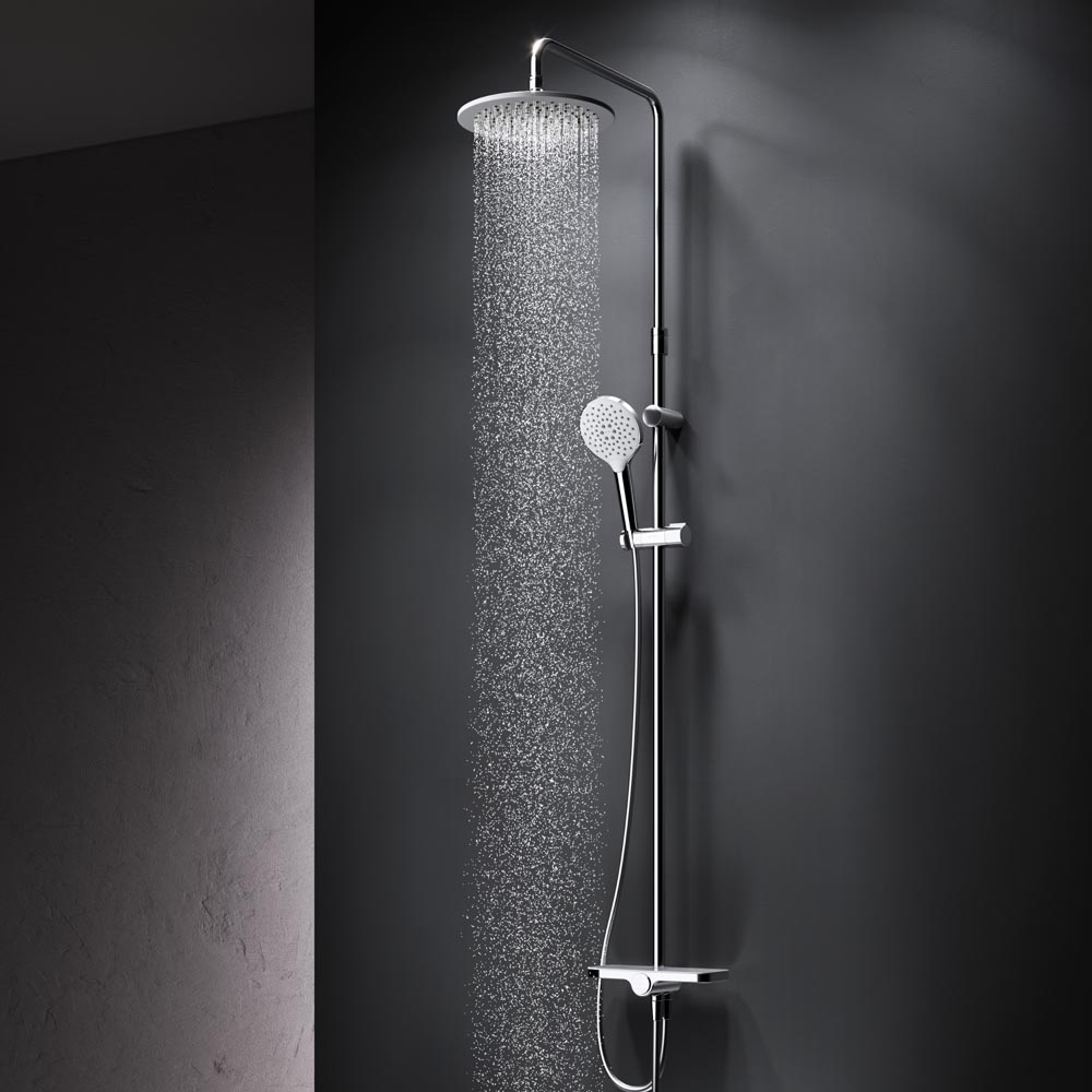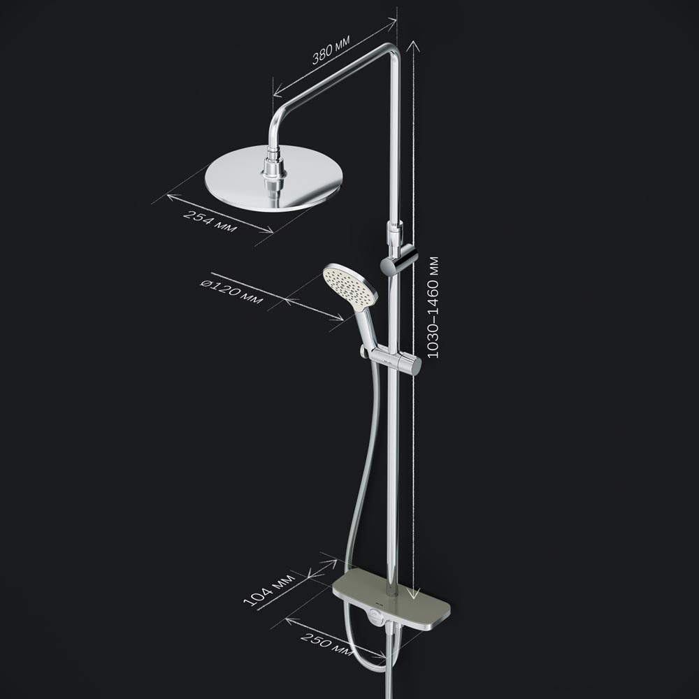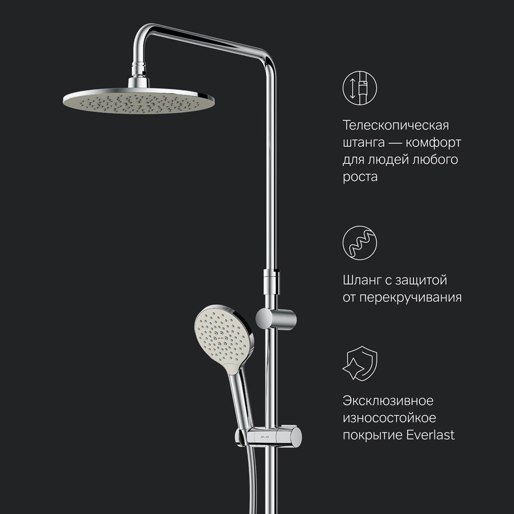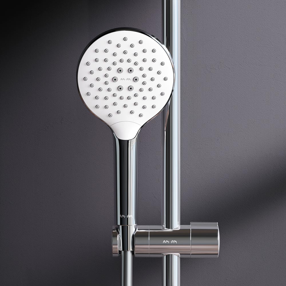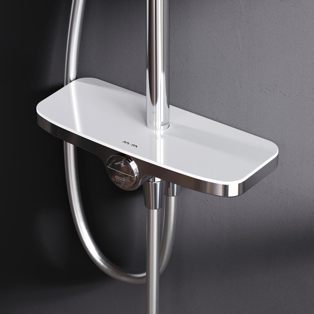 Душевая система AM.PM Like F0780200 с круглым верхним душем и полочкой.