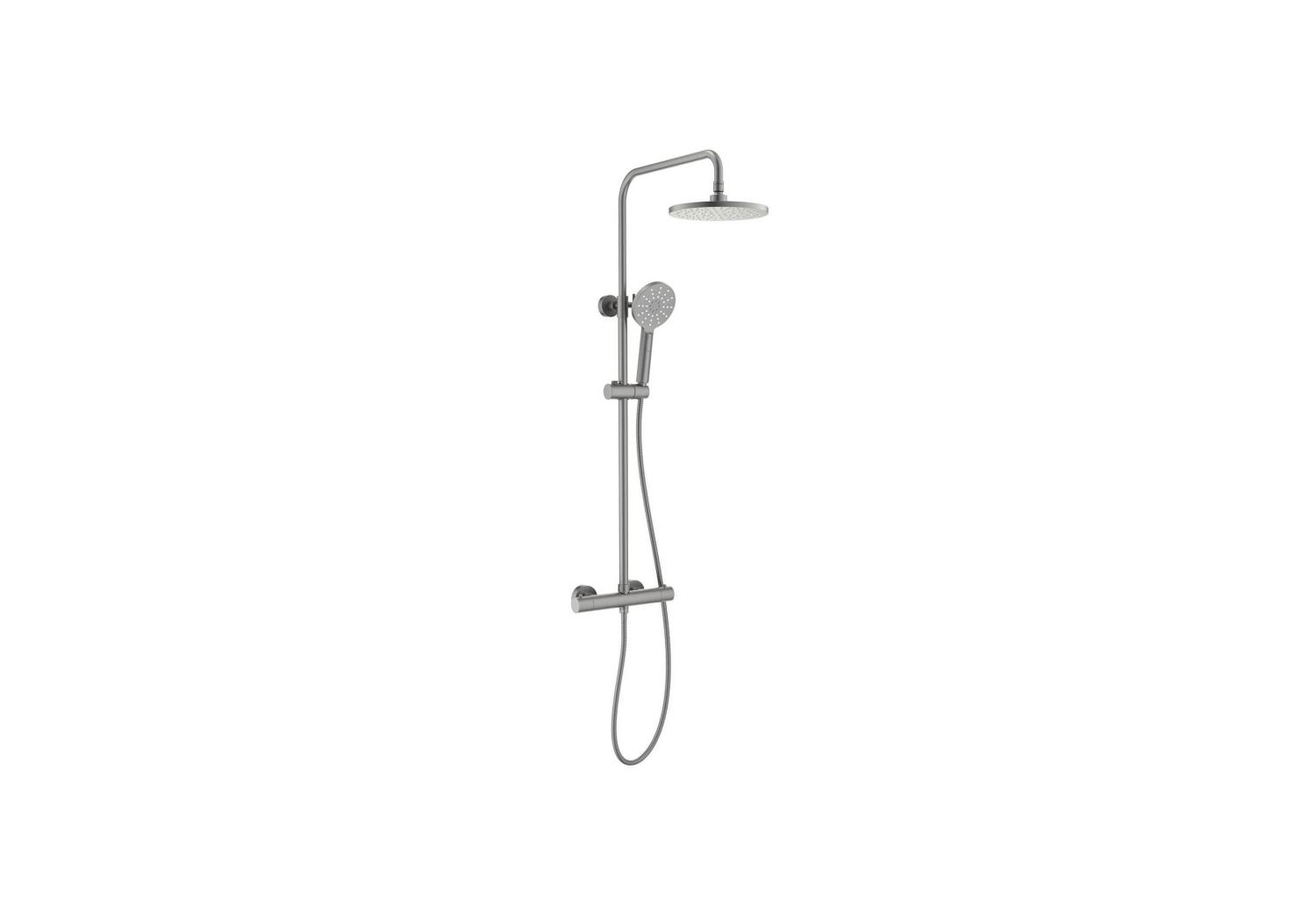 - Регулируемая душевая штанга из нержавеющей стали, выдвигающаяся до 1383 мм в высоту