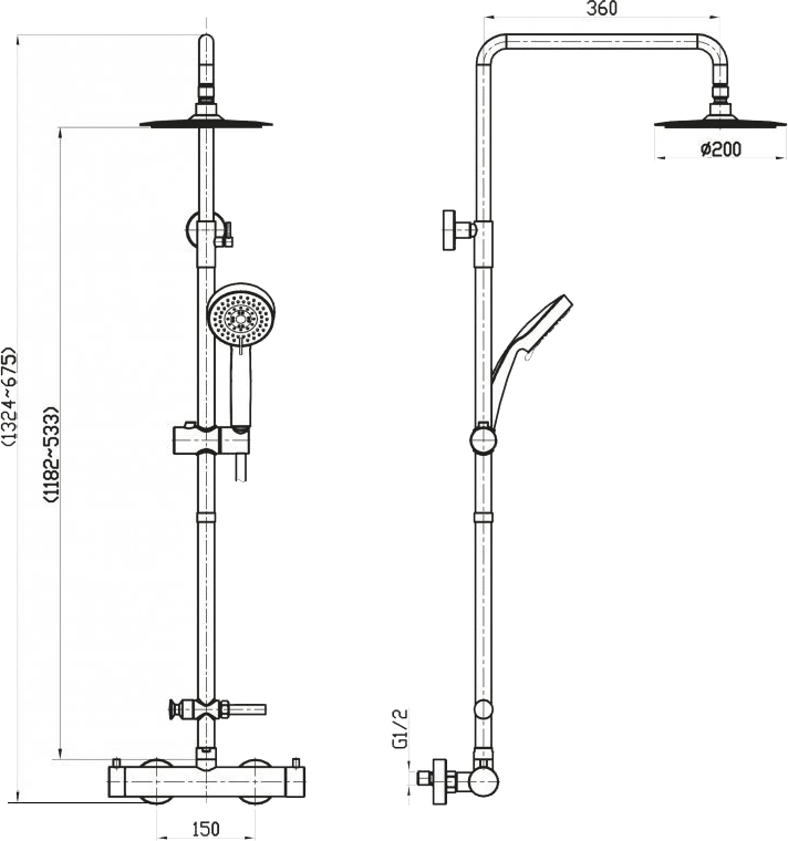 Штанга с регулируемой высотой в диапазоне 132.4 - 167.5 см.
