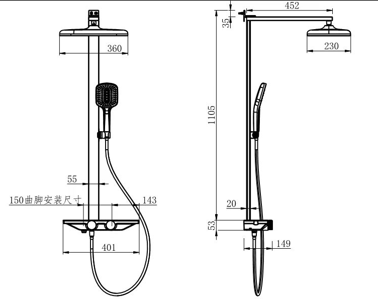 | Оснащение | душевой шланг, переключатель потоков, душевая лейка, полочка, держатель для душевой лейки |