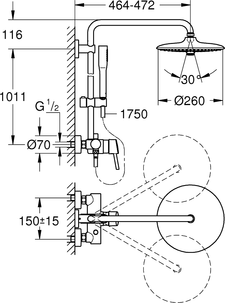 | Дополнительные функции | верхний душ с изменяемым углом, поворотная верхняя часть, легкое очищение |