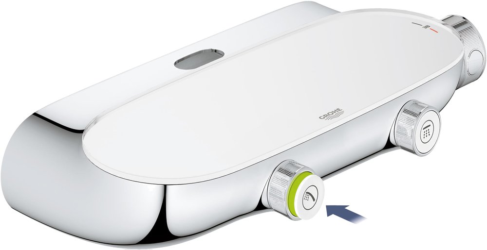 - Фирменная технология Grohe TurboStat быстро реагирует на изменения давления в системе, обеспечивая стабильную подачу воды заданной температуры
